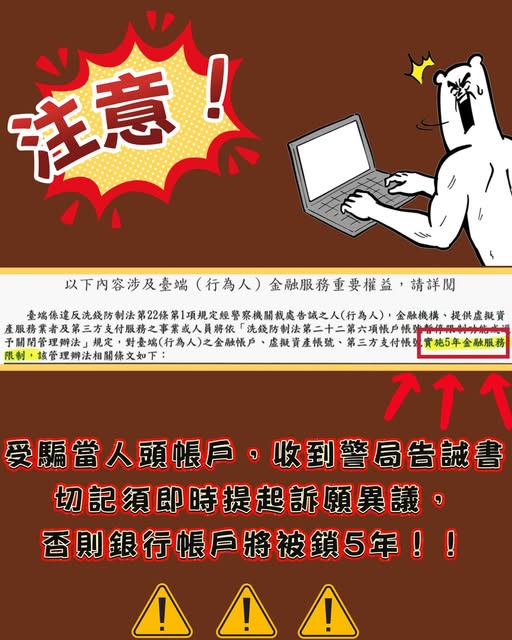 人頭帳戶注意!!你收過「告誡書」嗎?