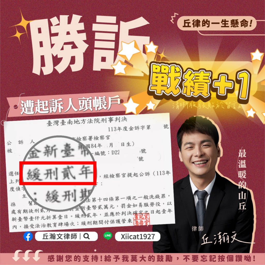 10.賀!當事人網路借貸受騙成人頭帳戶!不起訴!:https://reurl.cc/GnnyW3